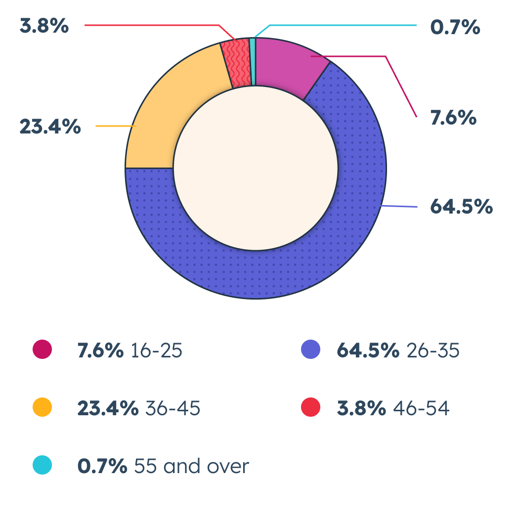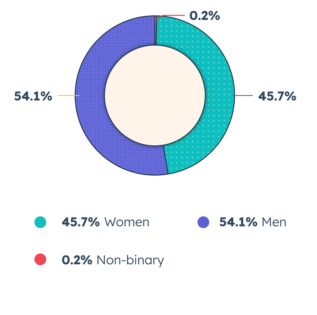 Below is HubSpot employee data as of January 1, 2024. Gender and age data is global, and ethnicity data is U.S.-only. To view more data and information, download the PDF below.